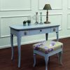 Туалетный столик GINA нежного голубоватого оттенка. Такой столик само вдохновение и очарование красоты. Модель имеет два ящика и откидное зеркало, под которым еще 8 маленьких отделений. Изделие из ясеня изготовлено с деревянным днищем ящиков. Туалетный столик из палисандра имеет внутреннюю отделку ящиков из ткани.