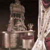 Этот невероятный набор для спальной комнаты SORRENTO создан для истинных ценителей роскоши. Королевская кровать с высоким обитым изголовьем выполнена на деревянном каркасе. На выбор заказчика представлен шикарный балдахин для кровати из бархатной ткани. Прикроватные тумбы, комод, пуф и зеркало отделаны лаком и дополнены изысканными резными элементами, которые прекрасно дополняют кровать.