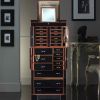 Шкаф для драгоценностей II Grande Scrigno от итальянской компании Agresti имеет приятную для глаз матовую отделку из корневища вяза и красного дерева с невероятно красивой текстурой. Модель имеет двадцать ящиков разного размера с замками и три нижних ящика без замков. В комплекте приспособления для хранения цепочек.