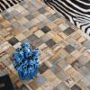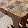 Стол для гостиной представляет собой полностью разборную конструкцию. Каркас и ножки стола - металл, столешница - уникальная мозаика из деревянных элементов различных сортов древесины, которые составляют эффектный цветовой ансамбль. Стол сочетает в себе стили индастри, кантри, эффектные черты классики и минимализма и сочетается с многими вариантами дизайна интерьеров.