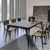 Выразительный гарнитур для столовой - стол и стулья, которые возможно приобрести, как в едином ансамбле, так и по-отдельности. Стол отличается полностью разборной конструкцией, имеет оригинальный дизайн, сочетающий изыск металлического каркаса и эффектность деревянной столешницы. Столешница выполнена в виде некоей мозаики из деревянных «кубиков» различной фактуры и цвета, что создает образ плетеной поверхности. Стулья выполнены в едином стилевом со столом решении, деревом отделано сиденье и высокая спинка.