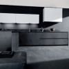 Кухонный гарнитур из коллекции Twenty итальянской фабрики Modulnova. Кухня выполнена в духе всей коллекции Twenty - являясь частью гостиной, это - многофункциональный гарнитур, предоставляющий рабочую кухонную зону с печью, мойкой, разделочным столом и шкафчиками. Дизайн кухни интересен тем, что выполнен в стиле, который присущ именно гостиным комнатам, нежели рабочим кухонным зонам. Элегантный классический минимализм позволил дизайнерам фабрики завуалировать визуально рабочие зоны. Удивительное сочетание белого, графитового цветов, использованных для мебели, эффектно дополняет коричневый тон отдельных предметов.