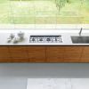 Кухонный гарнитур - часть оригинальной коллекции Twenty от Modulnova. Элегантная многофункциональная кухня, составленная из нескольких модулей, которые вместе охватывают все необходимое оборудование - шкафы для кухонной утвари, рабочую зону с варочной панелью и комфортной мойкой, разделочный и обеденный стол. Мебель выполнена в стиле эклектики, который в данном случае совместил высокотехнологичный хай-тек и аккуратное классическое кантри.