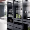 Выразительная, комфортная и многофункциональная кухня из коллекции Twenty. Гарнитур представлен угловым размещением основной рабочей и обеденной зоны, в которой шкафы-комоды соединены эффектной столешницей, представляющей собой удобный стол. Шкафы для хранения кухонной утвари и необходимых в столовой принадлежностей, представляют собой компактный модуль в стильном дизайне хай-тек. Кухня Kerlite создана в образе кухни-столовой, а потому предназначена в том числе для размещения в студийных проектах помещений. Цвет модели - черный глянцевый и матовый графитовый.