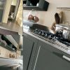 Стильная, выполненная в ярком насыщенном минимализме кухня относится к одной из самых стильных коллекций итальянского производителя - Volume2. Кухонный гарнитур представлен, как модулями-столами с рабочими зонами, так и шкафами для хранения кухонных принадлежностей (напольными и навесными), изящным дополнением являются открытые полочки и стильные держатели для кухонных аксессуаров. Светло-графитовый цвет облицовки кухни эффектно дополнен серебристыми матовыми рабочими поверхностями.