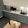 Стильная кухня для меблировки помещений кухни, столовой, студии. Кухня составлена из отдельных модулей, представляющих комфортную рабочую зону, шкафы для хранения кухонных приборов и принадлежностей, обеденный стол, который объединен со столом-комодом. Цветовая гамма модели сочетает графитовый цвет, натуральное дерево и полированный металл.
