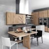 Эффектная практичная и комфортная кухня из натурального дуба с редким и выразительным «узором» с сучками. Столешницы рабочего стола выполнены из прочного экоцемента, мойка - нержавеющая сталь. В дизайне кухня соединяет колорит городского стиля хай-тек и уютного кантри, создавая выразительный образ меблировки современной кухни, студии. Стол с рабочей зоной соединен конструктивно с обеденным столом, что придает кухне особый шик оригинальности.