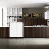 Роскошный кухонный гарнитур из обожженного дуба, шоколадный цвет которого эффектно сочетается с белоснежными панелями. Кухня отличается наличием оригинального шкафа с открытыми полками, которые придают дизайну гарнитура необычный колорит. Столешница, створки дверец столов выполнены из матового белого стекла, шкафы оснащены внутренней подсветкой.