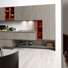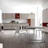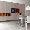 Оригинальная кухня, сочетающая лаконичный минимализм, неординарно яркий модерн и многофункциональный практичный хай-тек. По сути это гарнитур, разработанный для обустройства интерьера современной кухни-гостиной, для которых в нем предложены, как кухонные традиционные предметы мебели - рабочий стол со встроенным оборудованием, шкаф с кухонной техникой, так и стильные шкафы-стенки, сочетающие закрытые и открытые, оригинально исполненные полки. Обеденная зона создана прямоугольным столом и стульями.