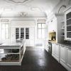 Восхитительная кухня для респектабельного интерьера. Элитный гарнитур включает изысканного дизайна шкафы, рабочий и обеденный стол, эффектную витрину с полками застекленными матовым сатиновым стеклом. Кухня выполнена из отбеленного дуба, столешницы - белый полированный каррарский мрамор. Гарнитур сочетает изящные стили кантри, классики и античности.