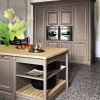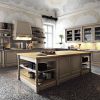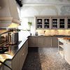 Изысканного стиля кухня из натурального бука с лакировкой методом спаццолато, который в данном случае придал эффект серебристости поверхности, названный дизайнерами цветом «шелковая серебристая голубка». Изящные очертания классического гарнитура эффектно подчеркнуты стилем хай-тек, который использован в дизайне рабочих зон. Гарнитур представлен рабочими столами со столешницами из нержавеющей стали и реечного бука (для отдельно стоящего стола), буфетом со встроенной техникой, навесными шкафчиками со стеклянными дверцами, эффектными открытыми полками.