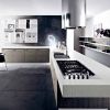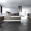 Необычайно стильная кухня из дуба оригинального оттенка, названного дизайнерами компании, как «глиняный». Цвет придает гарнитуру уютный штрих, присущий стилю кантри, но вместе с тем сам дизайн кухни выполнен в классическом направлении с идеями минимализма и высокотехнологичного хай-тек. Кухня отличается варьированием уровней размещения предметов мебели, использованием профилей различной толщины и ширины, контрастами в цветовой гамме, где также использован белый цвет. Гарнитур включает множество открытых полок, которые эффектно дополняют «закрытый» шкаф.