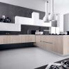Кухня в стиле прованс выполнена из дуба с матовой лакировкой поверхности белого, бежевого и черного цветов, который выделяют каждый отдельную зону - рабочую кухонную, шкафы и полочки для хранения посуды, обеленный стол со стильными лавочками. Кромки дверец и выдвижных ящиков отделаны абс-пластиком. Столешница и стол обеденный выполнены из дубового ламината.