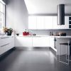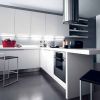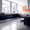 Кухня представлена в двух вариантах отделки (на фото): белоснежный глянцевый гарнитур и роскошный черно-оранжевый гарнитур. Обе модели идентичны конструктивно и представляют одинаковый набор предметов мебели, которые позволят составить меблировку вместительной кухни, большой столовой, создать дизайн студии-гостиной. Кухня выполнена из дуба, элементы отделки - алюминий, стекло, столешницы - ламинат.