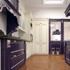 Выразительная в стиле, дизайне и цветовой гамме кухня-столовая. Гарнитур, выполненный в эффектном классицизме, использует сочетание контрастных яркого сапфирового цвета и нежного тона айвори, полированные матовые поверхности в гарнитуре гармонируют с лакированными глянцевыми. Кухня представляет столы рабочей зоны, шкафы, навесные полки в том числе и со стеклянными дерцами, компактный обеденный стол.
