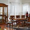Гарнитур для столовой в изящном английском классицизме. Гарнитур включает роскошный прямоугольный обеденный стол, стулья, эффектную витрину со стеклянными дверцами, а также стеклянными боковыми панелями. Мебель выполнена в цвете махогон с глянцевой лакировкой и декором элементами «под бронзу». Мебель гарнитура возможно заказать по-отдельности.