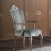 Изысканный и фешенебельный стул с удобными подлокотниками. Обивка сиденья и выразительного дизайна высокой спинки выполнена из роскошного бархатного материала серо-серебристого цвета. Спинка имеет боковую поддержку, обеспечивающую исключительное комфортное размещение. Также спинка отличается особенным дизайнерским изыском - декором резным фигурным элементом в виде виньетки.