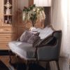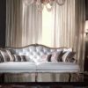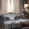 Роскошный диван в стиле арт-деко. Модель отличается изысканным исполнением деревянных элементов спинки и ножек, которые отличаются плавными элегантными изгибами и украшены резными декоративными элементами. Фешенебельная роскошная обивка выполнена каретным методом (спинка), что придает модели особенную изысканность и утонченность. Сиденье - две мягкие подушки.