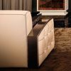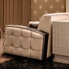 Эффектный кожаный диван с деревянными вставками в качестве подлокотников. Диван полностью с отделкой натуральной кожей, боковые панели отличаются обтяжкой каретным методом, что придает ему особенный шик и колорит. В модели использовано изысканное контрастное сочетание цветов, что составляет ансамбль тона айвори и кофе. Для большей выразительности все швы обивки подчеркнуты декоративной контрастной строчкой.