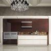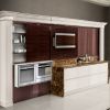 Эффектная современная мебель для оборудования кухни, которая, благодаря оригинальному дизайну, также может быть использована в меблировке проекта студии, столовой. Кухня оснащена вместительным шкафом с полками для хранения посуды, которые скрыты за выдвигающимися дверцами, компактным рабочим столом, вместившим все необходимое оборудование, включая мойку, варочную панель.
