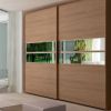 Двустворчатый шкаф с раздвижными дверцами. Особый изыск и колорит дизайну модели придают зеркальные вставки на дверцах, которые в полной мере несут практическое значение. Модель представлена в трех вариантах отделки, при идентичности дизайна, они выполнены из разных материалов: из лиственницы, темного вяза и модель с белой лакировкой и дверцами с отделкой стеклом «лакированный лед».