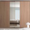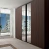 Элегантный шкаф для спальни, гардероба, прихожей. Шкаф - двустворчатый, двери раздвижные, каждая из них имеет зеркальную вертикальную вставку, которая придает дизайну модели изящность, конструкции - практичность. Шкаф представлен в четырех различных вариантах отделки, но одинаковом дизайне и конструктивном исполнении: вишня, темный вяз, лиственница "кремовая" и лиственница «серебристая».