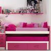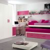 Стильный гарнитур для меблировки детской комнаты девочки, школьницы, студентки. Гарнитур выполнен в ярком сочетании цветов цикламен, фуксия и белый, которые создают очаровательный ансамбль. Детская состоит из основных необходимых предметов мебели - платяного шкафа, рабочего стола, кровати в двух уровнях (нижний - выдвижной), которая оборудована выдвижными ящиками, навесными открытыми и закрытыми полками.