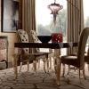 Изысканный обеденный стол в эффектном дизайне и декоре. Стол отличается неординарным декором столешницы - в центре выполнен овальный элемент из композиции резных листьев, что придает всей модели определенный шикарный колорит. В дизайне обеденного стола ярким штрихом выделяются изогнутые фигурные ножки. Прямоугольная столешница не раскладная.