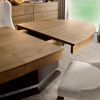 Оригинального яркого дизайна обеденный стол с овальной столешницей. Оригинальность дизайну модели придает центральный элемент-стойка, который исполняет роль ножки. Выразительность и внушительность опоры удачно сочетается с изяществом столешницы, которая оснащена раздвижным механизмом, благодаря которому за столом с комфортом могут разместиться шесть персон.