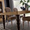 Прямоугольный обеденный стол представлен в двух вариантах: с раздвижной столешницей и цельной. В собранном виде стол рассчитан на шесть персон, за раздвижной моделью могут с комфортом разместиться восемь. Столешница стола выполнена в классическом лаконичном дизайне, яркий колорит которому придают оригинальные «телескопические» ножки, напоминающие по форме ствол экзотической пальмы.