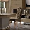 Эффектный фешенебельный стул для меблировки столовой, гостиной. Стул отличается выразительной обивкой высокой спинки каретным методом, который придает мягкой мебели особенный колорит и царственный шик. Сиденье стула также с мягкой обивкой, передние ножки с легким фигурным декором. Стул станет украшением классического интерьера, дизайна барокко и рококо.