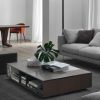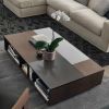 Неординарного дизайна и конструкции кофейный столик. Модель представляет собой некий симбиоз кофейного столика и комода, который оснащен удобными открытыми полками. Полки размещены под столешницей, которая, в свою очередь, отличается оригинальностью дизайна. Столешница выполнена из трех различных материалов, которые различны не только по цвету, но и структуре. Модель представлена в двух вариантах, отличающихся габаритами.