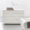 Неординарного дизайна и декора комод для спальни. Комод оснащен четырьмя ящиками с выдвижным механизмом, передние панели ящиков выполнены в скульптурной асимметричной композиции планок. Оригинальная и в то же время элегантно-эстетичная модель станет отменным дополнением меблировке современной стильной спальной комнаты. Отделка комода выполнена шпоном натурального ясеня.