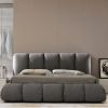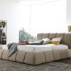 Колоритная и неординарная в дизайне кровать с оригинальным исполнением мягкой обивки. Обивка в крупную стежку-полосу выполнена по периметру каркаса и на высоком изголовье. Обивка создана с эффектом «дутости», что придает модели комфорт и уют. Кровать представлена в нескольких вариантах, которые отличаются наличием/отсутствием отдела для хранения постельного белья, а также механизмом подъема матраца.