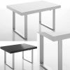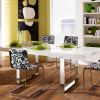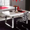 Обеденный стол с прямоугольной столешницей. Стол имеет оригинальные ножки из металла, покрытые эффектным серебристым хромом, что стильно сочетается с глянцевой белой поверхностью столешницы. Сама столешница выполнена из дерева, она имеет практичный удобный раздвижной механизм, который превращает 6-местный стол в модель на 10 персон.