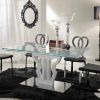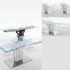 Неординарный и невероятно стильный стеклянный стол с раздвижной столешницей. Модель отличается не только изящной поверхностью - столешницей, выполненной из тонкого ударопрочного стекла, но и столь же выразительной зеркальной основой, особый же шарм дизайну придает эффектная скульптурная композиция, составляющая ножку стола. Стол имеет раздвижной механизм.