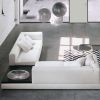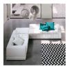 Диванная композиция для обустройства уютной гостиной. Композиция представляет ансамбль из двух диванов и столика, оригинально расположенного в углу между сиденьями диванов. Также композицию можно выполнить и с пуфом вместо столика (на фото). Модели диванов имеют мягкую обивку подлокотников и спинки, сиденье составляют мягкие комфортные подушки. Столешница столика - дерево, основание - с отделкой тканью в тон обивке диванов.