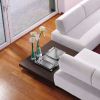 Низкий оригинальный журнальный столик с квадратной столешницей. Столик имеет эффектное основание и вместо ножек оборудован низким «подиумом», что придает его дизайну особенный эксклюзивный штрих. Отделка столика - дуб в тоне серый антрацит, который сочетается с множеством цветов в интерьере помещения. Столик составит выразительную композицию в меблировке гостиной с угловым диваном.