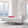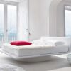 Двуспальная кровать на шикарном подиуме. Модель отличается эффектным простотой и лаконичностью стилем выполнения каркаса, который представляет изогнутую в изголовье тонкую конструкцию. Кровать установлена на круглый подиум, который заменяет ножки, при этом, важно - каркас установлен статично. Изголовье средней высоты позволит с комфортом расположиться в кровати сидя.