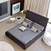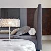 Эстетичная, выполненная в выразительном современном стиле минимализма двуспальная кровать. Каркас модели полностью обернут в мягкую обивку, что придает ей дополнительный комфорт, высокое изголовье позволит с удобством разместиться сидя. Каркас представленной модели кровати не предусматривает оснащение отделением для хранения вещей.