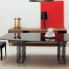Оригинальный стол для столовой, дизайн которого полностью соответствует духу названия - City - городской. В стиле модели сочетается неординарность и динамизм, который присущ дизайну ножек, выполненных из «паутинки» металлических прутьев с лаконичностью и изысканной лаконичностью столешницы. Стол представлен в нескольких вариантах исполнения столешницы - со стеклянной, или деревянной.