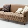 Поистине роскошный кожаный диван с выразительной каретной обивкой сиденья. Подлокотники и спинка модели выполнены в контрастном варианте гладкой обивки, что создает удивительный изящный ансамбль. Диван не раскладывается, представлен в широком выборе габаритов, в качестве обивки альтернативой натуральной коже может быть предложен роскошный вельвет.