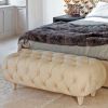 Уютный, фешенебельный, с обивкой роскошными материалами пуф. Модель представлена в двух вариантах - с большим квадратным сиденьем и удлиненным прямоугольным, что делает его отменным выбором в качестве прикроватной модели в спальне. Обивка возможна в исполнении элитной вельветовой ткани, или натуральной кожи, метод обивки пуфа - модный каретный.