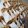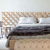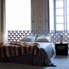 Кровать с невероятно стильным высоким изголовьем, выполненным в виде изящной сетки из фигурных витых планок. Изголовье представлено в варианте отделки золотистой краской, серебристым напылением, но также представлен роскошный вариант с напылением золотом в 24 карата. Двуспальная кровать предложена с версией вертикального изголовья, а также горизонтального.