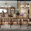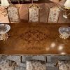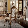 Гарнитур для столовой, точнее - роскошный гарнитур для фешенебельной меблировки эффектной столовой. Гарнитур включает нераздвижной овальный стол с выразительным декором столешницы и богатой отделкой, а также мягкие стулья в вариантах с подлокотниками и без них. Гарнитур возможно приобрести как цельным набором, таки предметы мебели, входящие в него в отдельности.