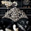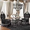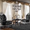 Эффектный и роскошный гарнитур для гостиной, составленный креслами и столиком. Мебель отличается изыском ручной работы, в особенности - изысканной резьбой по дереву, которая является истинным украшением как спинки кресел, так и столика. Мебель выполнена в сочетании черного и серебристого цветов, что придает гарнитуру особенный эффект импозантности. Кресла и столик возможно купить в отдельности.