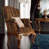 Гарнитур для гостиной комнаты, собранный из фешенебельной мебели с отделкой ручной работы. В гарнитур, предметы которого также возможно купить и в отдельности, входят: кресла с обивкой элитными итальянскими тканями, квадратный столик с изысканными изогнутыми ножками и богатой инкрустацией и декором столешницы. Также в гарнитуре предложена красивая консоль, щедро украшенная резными элементами, все - эксклюзивной ручной работы. Зеркало в гарнитуре - отдельное произведение искусства, отличающееся богато декорированной рамой.