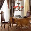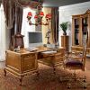 Невероятно эффектный и выразительный гарнитур для обустройства респектабельного фешенебельного кабинета. В гарнитур включена библиотека с полками за стеклянными дверцами, письменный стол, стулья и вращающееся кресло на колесиках, а также оригинальный и эстетичный передвижной бар в виде глобуса. Все предметы мебели отличаются отделкой ручной работы, использована инкрустация резных элементов. Гарнитур возможно купить как полностью, так и отдельными предметами мебели.