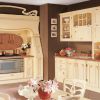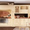 Кухня в оригинальном и невероятно стильном дизайне итальянского кантри. Модель представлена в изысканном сочетании карамельного цвета и золотистого декора, который щедро украшает резные дверцы и барельефы гарнитура. Столешница стола и столешница у варочной панели с мраморной отделкой. Кухня составлена гарнитуром, который, помимо шкафов и рабочего стола, также представлен красивым шкафом с варочной панелью и духовкой