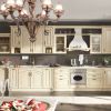Комфортная, элегантная и роскошная кухня, сочетающая классический дизайн и уникальный изысканный итальянский прованс. Кухня представлена роскошным гарнитуром из отдельно стоящих шкафов, навесных шкафов, а также рабочих столов и столов со встроенной бытовой техникой. Высокотехнологичная кухня выполнена в цвете слоновой кости, элементы в отделке, а также ручки дверец и ящиков выполнены в стиле состаренной бронзы.